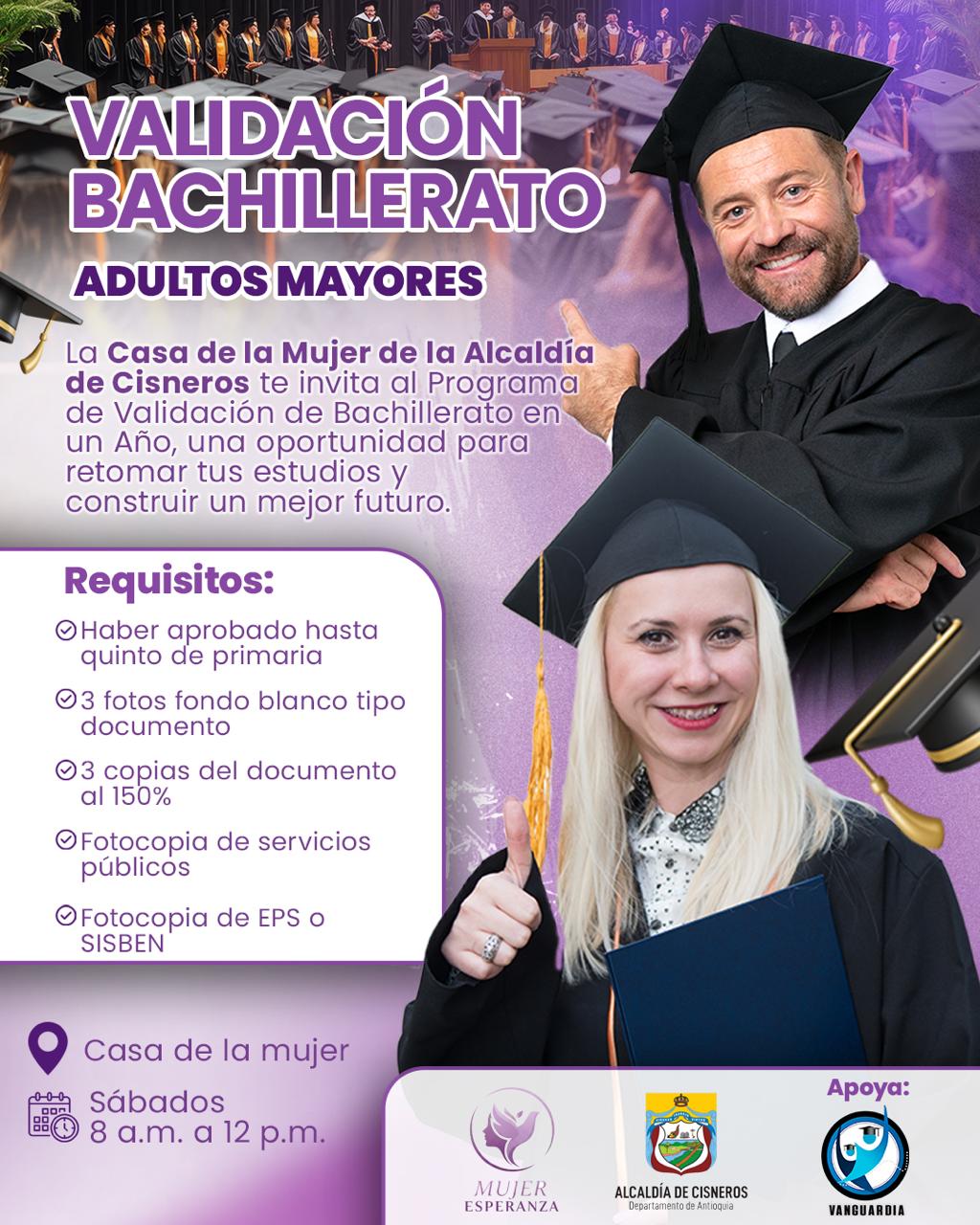 VALIDACIÓN BACHILLERATO ADULTOS MAYORES La Casa de la Mujer de la Alcaldía de Cisneros te invita al Programa de Validación de Bachillerato en un Año, una oportunidad para retomar tus estudios …